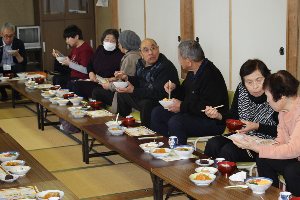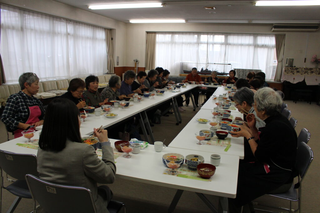 講話の後は、ボランティア団体「コスモス会」のみなさんが心を込めて調理した昼食をいただき、会場は笑顔と会話があふれる場になりました。参加者からは「毎年楽しみにしている」などの声が寄せられ、大変好評でした。